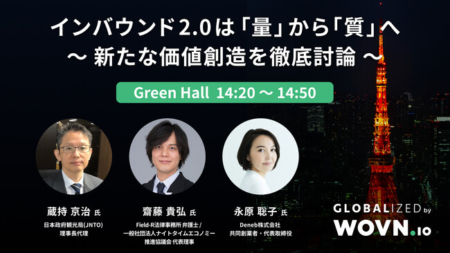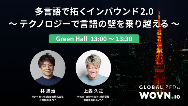 Web サイト多言語化ソリューション『WOVN.io(ウォーブン・ドットアイオー)』、アプリ多言語化ソリューション『WOVN.app(ウォーブン・ドットアップ)』を提供する Wovn Technologies株式会社(本社:東京都港区、代表取締役 CEO:林 鷹治、以下 WOVN)は、2023年2月16日(木)12時から『GLOBALIZED インバウンド 2.0』を無料開催します。東京のシンボルである東京タワーの真下に位置するスターライズタワー(東京タワーメディアセンター内)での会場開催の他、オンラインからも視聴いただけます。