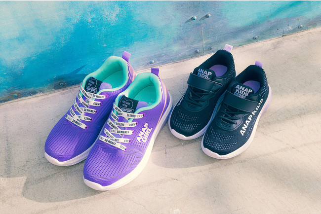今回発売されるアイテムは、パープルやネオンカラーなどの「スポストリートスタイル」、爽やかなミントカラーにチラッと見えるゼブラカラーがおしゃれな「カジュアルガーリースタイル」、鮮やかなパープルが今旬な「ハデピープススタイル」、落ち着いたネイビーが優等生風にキマる「おとなこなれスタイル」といった4つのスタイルを、誌面でも人気の専属モデルの4人が、それぞれの個性にあわせて着こなしてくれています。また、今回誌面では新発売となるアナップ ガールの妹分アナップ キッズも登場します。お姉さんとの姉妹コーデもお楽しみください。新学期、新年度は、履くだけでハッピーになれる人気のアナップ ガールの新作スニーカーで気分をアゲていきましょう。
