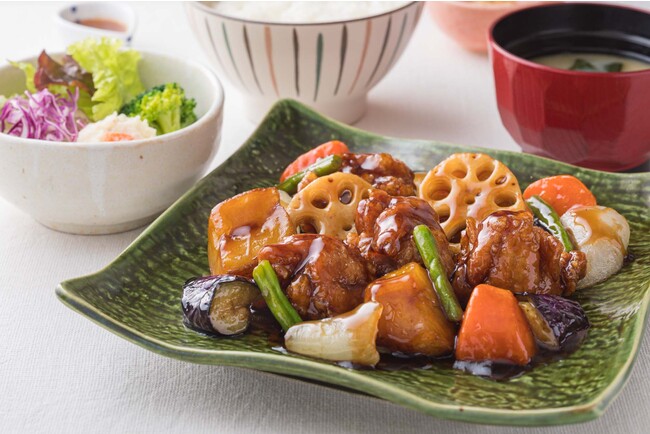 不動の人気No.1メニュー!玄米黒酢と黒糖に、りんご酢で味を調えた、大戸屋オリジナルの黒酢あん。