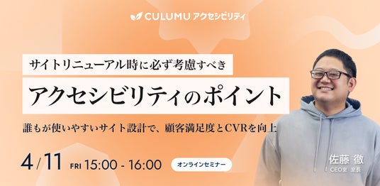 4月11日(金)15時から「サイトリニューアル時に必ず考慮すべきアクセシビリティのポイント ~誰もが使いやすいサイト設計で、顧客満足度とCVRを向上~」 セミナーを開催します。