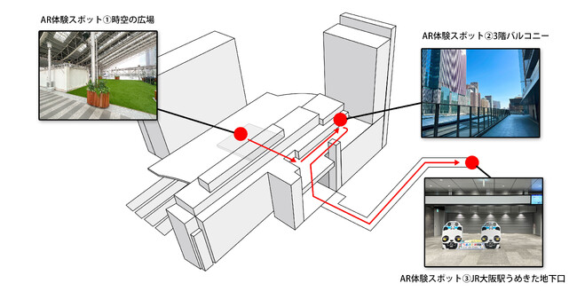 スタートからゴールまでの間には、チェックポイントとして3つの“AR体験スポット”や“AR体験に彩りを与えてくれる「アイテムポイント」スポット”を複数箇所に設置しています。全てのチェックポイントをコンプリートすると、「うめきた地下口」でのAR体験に特別な演出が現れるかも!?