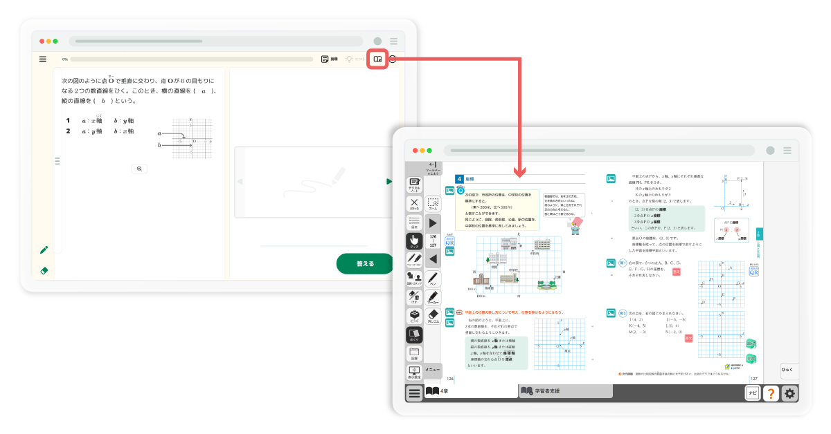 キュビナからデジタル教科書への遷移のイメージ(問題画面からの遷移)