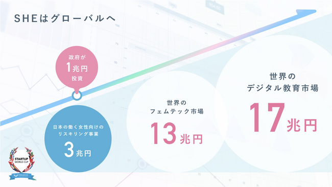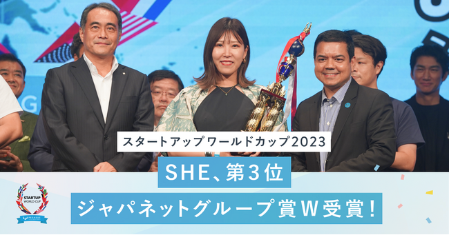 学ぶから働くまでをサポートする日本最大の女性向けキャリアスクール「SHElikes(シーライクス)」を運営するSHE株式会社(所在地:東京都港区、代表取締役CEO:福田恵里、以下SHE)は、本日9月8日(金)グランドハイアット東京で開催された「スタートアップワールドカップ2023」東京予選にて第3位とジャパネットグループ賞のW受賞を獲得しました。
