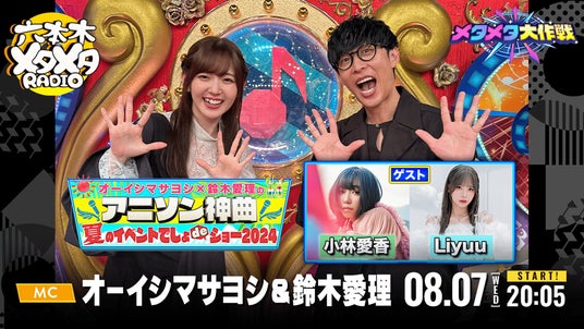 『オーイシマサヨシ×鈴木愛理のアニソン神曲 夏のイベントでしょdeショー!!2024』2024年8月7日(水)番組イベント開催!!セットリスト公開&配信チケット販売スタート!