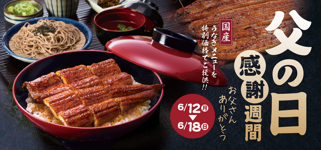 「お父さんありがとう」の感謝の気持ちを込めて、国産うなぎメニューをお値打ち価格で提供いたします。