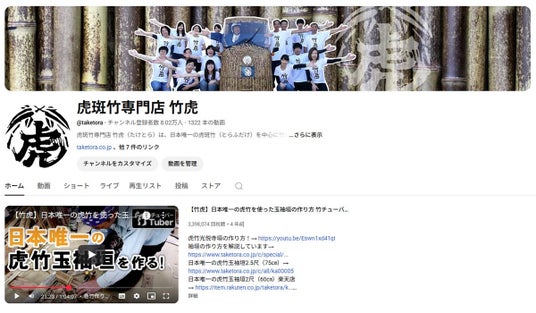 竹虎YouTubeチャンネル「虎斑竹専門店竹虎」