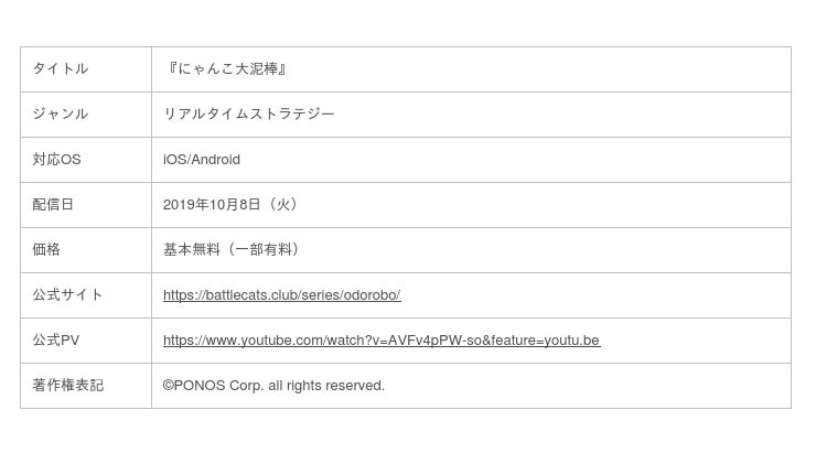 ポノス株式会社(本社:京都府京都市、代表取締役:辻子依旦、以下「ポノス」)が提供するスマートフォン向けゲームアプリ「にゃんこ大泥棒」が100万ダウンロードを突破いたしました。