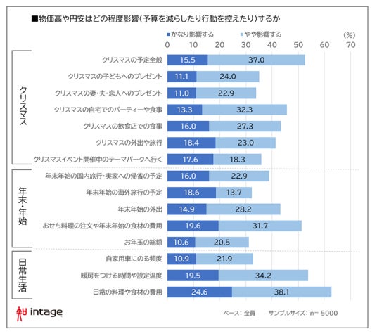 クリスマスや年末年始のイベントにかける予算を考える際、昨年から続く物価高や円安の影響をどのくらい受けるかについても質問しました。