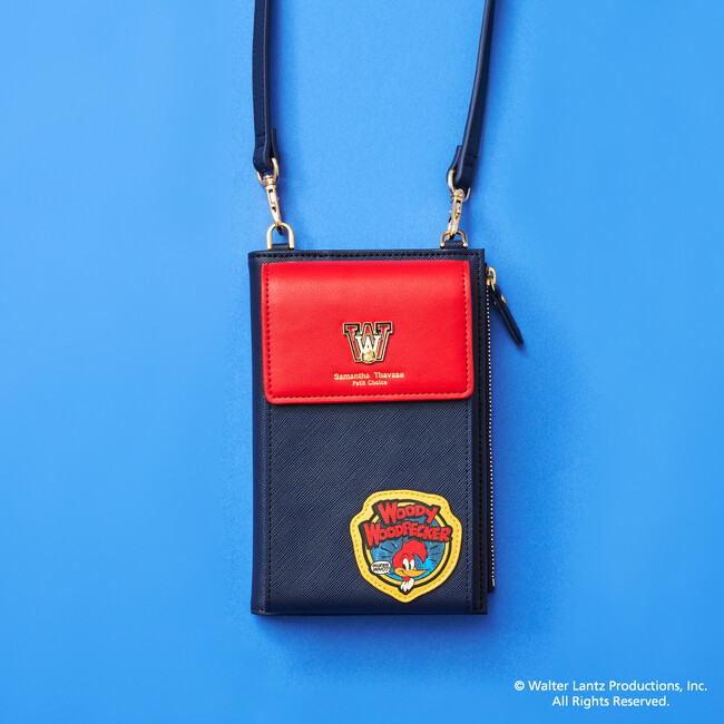 サマンサタバサプチチョイスの人気定番アイテム、スマホショルダーも「ウッディー・ウッドペッカー」仕様に。お財布と同じ配色にデザインされ、アートのパッチワークがポップな印象に可愛らしさをプラス。