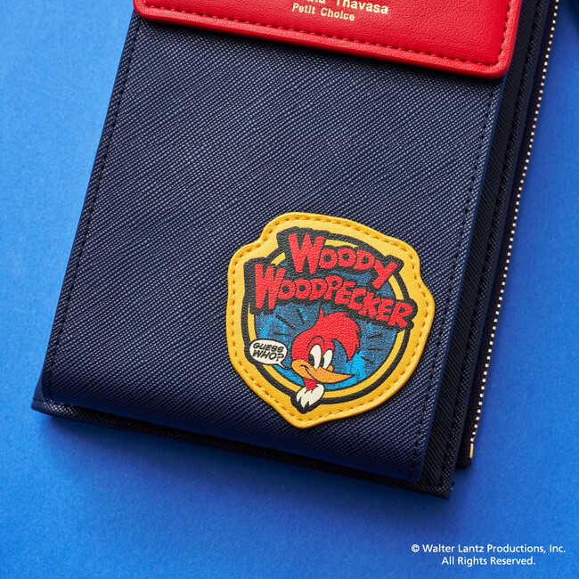 お財布とスマホショルダーの裏地は鮮やかな「ウッディー・ウッドペッカー」のコミック総柄。遊び心のあるアートに心躍るデザインシリーズ。