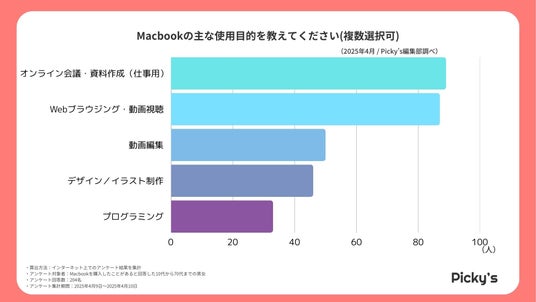 このたびPicky’s(https://picky-s.jp/)およびPicky’s Life(https://pickys-life.jp/)では、インターネット上でMacBookに関するアンケート調査を実施し、その結果を発表します。