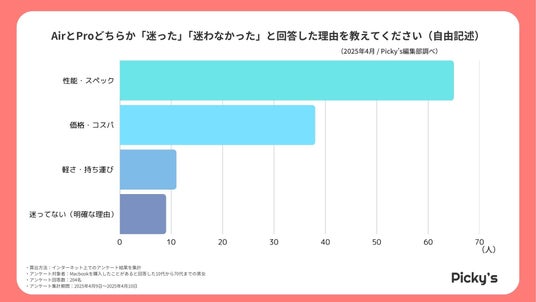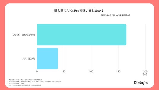 アンケート結果によると、約8割の購入者は「AirかProか」で迷わずに選んでおり、事前に明確な用途や予算感を持っている層が多いことがうかがえます。