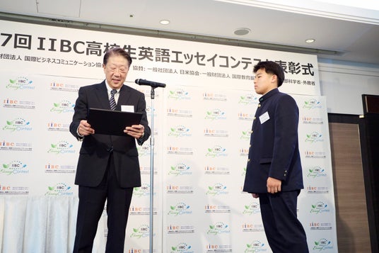 日本でTOEIC(R) Programを実施・運営する国際ビジネスコミュニケーション協会(IIBC)(所在地:東京都中野区中野、理事長:藤沢 裕厚)は、高校生を対象に毎年開催している英語エッセイコンテスト「第17回 IIBC高校生英語エッセイコンテスト」の表彰式を、11月23日(日)にホテルニューオータニ 東京で開催しました(後援:文部科学省、外務省/協賛:一般社団法人 日米協会、一般財団法人 国際教育振興会)。