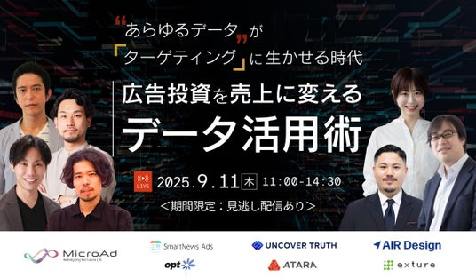 株式会社マイクロアド(本社:東京都渋谷区、代表取締役 社長執行役員:渡辺健太郎、以下 マイクロアド)は、2025年9月11日(木)に『“あらゆるデータ” が「ターゲティング」に生かせる時代』というテーマで、広告効果最大化を狙うマーケティング担当者向けに、ウェビナーを開催いたします。