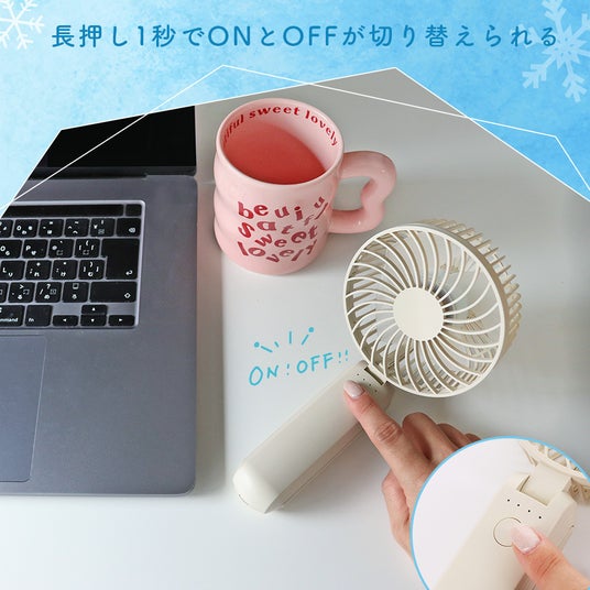 付属の專用スタンドを使えば、手がふさがっている場面でも卓上扇風機として使えます。