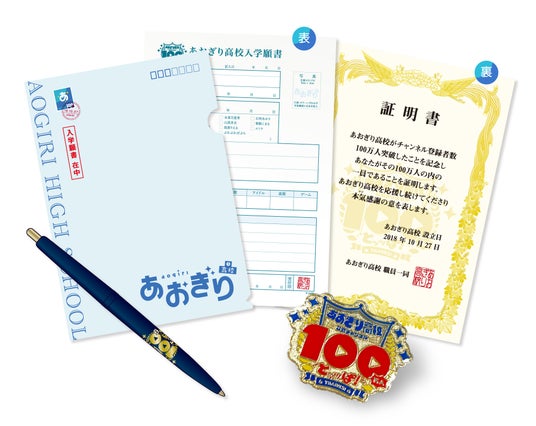 ●「あおぎり高校 公式チャンネル100万人突破記念グッズ 入学セット」