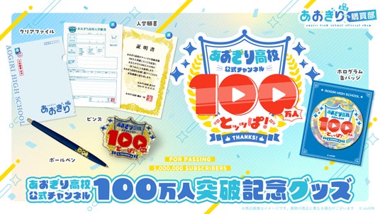 チャンネル登録100万人達成を記念して、公式通信販売『あおぎり高校購買部』 https://vivionblue.com/collections/aogirihighschool において記念グッズを発売します。