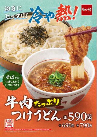 株式会社なか卯(代表取締役社長:向山 陽 本社:東京都港区)が展開する丼ぶりと京風うどんの「なか卯」は、5月25日(木)AM11:00より「牛肉たっぷりつけうどん」「旨辛牛肉たっぷりつけうどん」を販売します。