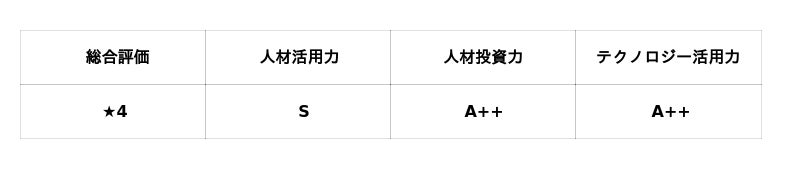 当社は、人材活用力で「S」、人材投資力とテクノロジー活用力で「A++」の評価を受けました。