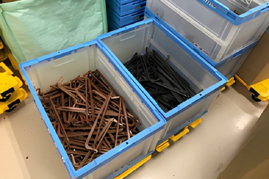 4.パンツハンガーも手作業でパーツごとに仕分け