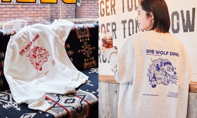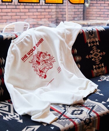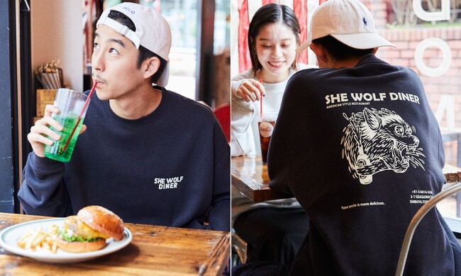 アメリカ料理をテーマに、手ごねのジューシーなパティ、甘味のあるグリルオニオン、自家製のアリオリソース、バンズにこだわったバランスの良い、本場アメリカのハンバーガーが味わえる、渋谷に店を構えるアメリカンダイナー「SHE WOLF DINER(シーウルフダイナー)」と「FREAK'S STORE」とのコラボレーションスウェットがリリース!