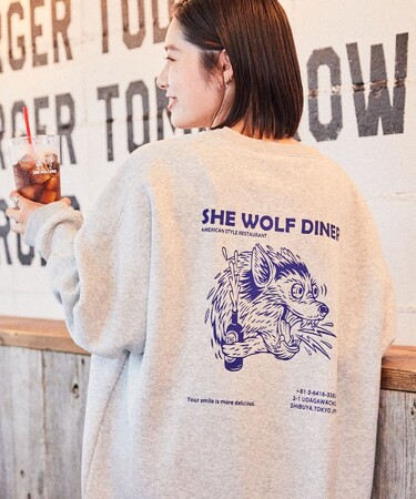 ■SHE WOLF DINER×FREAK'S STORE 【ビッグシルエット バックプリント クルーネックスウェット】