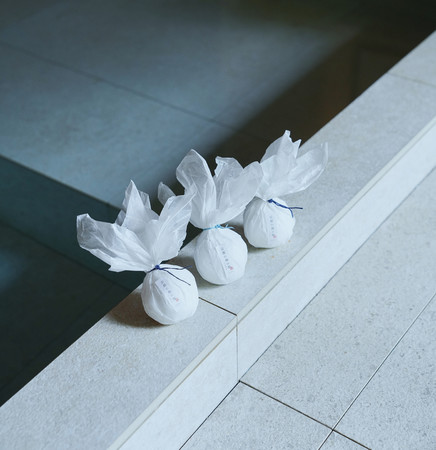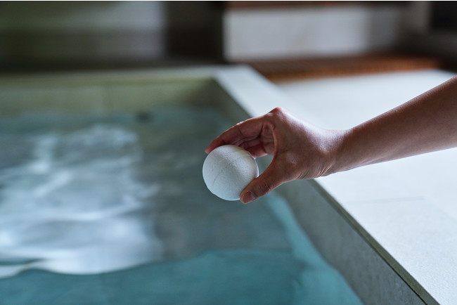 バスボムを湯船に入れると、乳白色の湯色に爽やかなヒノキの香りが広がります。