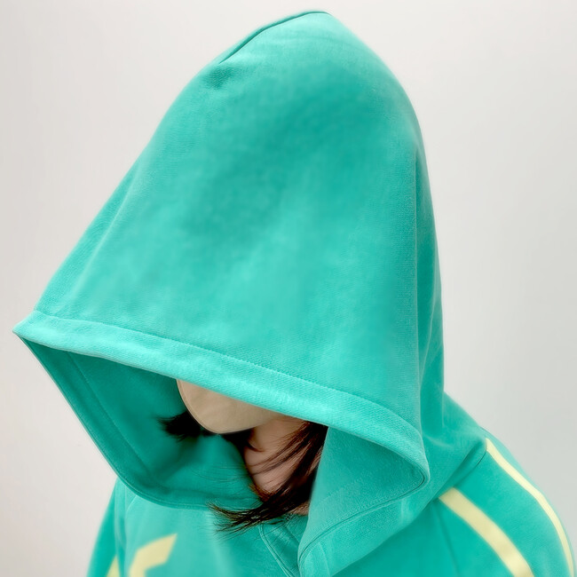 黒金 蓮が作中にて着用した私服パーカーを完全再現! オーバーサイズの裾丈や頭がすっぽり隠れる大きいフードが特徴。アニメ『シャインポスト』アニメーションプロデューサーこだわりの逸品です。