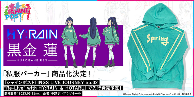 TVアニメ『シャインポスト』の制作に携わったスタッフ、出演キャストによる描き下ろしイラストやメッセージを収録した「シャインポスト スタッフ&寄せ書き本」と本作の登場キャラクター、HY:RAINの黒金 蓮が着用するパーカーを完全再現した「黒金 蓮 私服パーカー」が、2023年3月25日(土)発売決定!