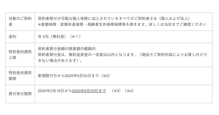 契約者貸付が必要なお客さまにおかれましては、契約者貸付に対して特別金利(無利息)を適用しておりますが、その貸付受付期間を1カ月延長いたします。