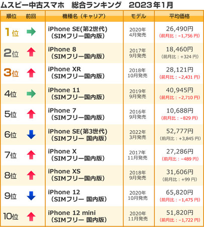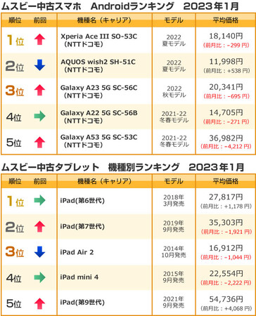 株式会社ウェイブダッシュ(本社:東京都千代田区、代表取締役 河野 由紀)が運営するフリーマーケットサイト「ムスビー」(https://www.musbi.net/) の2023年1月の中古スマホ・中古タブレットランキングを発表いたします。