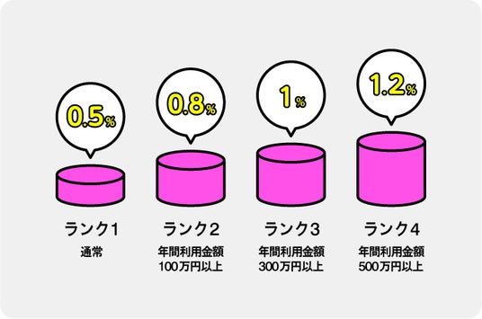 キャッシュバック率は初年度1%、2年目以降は前年のショッピング利用金額に応じて変化します。