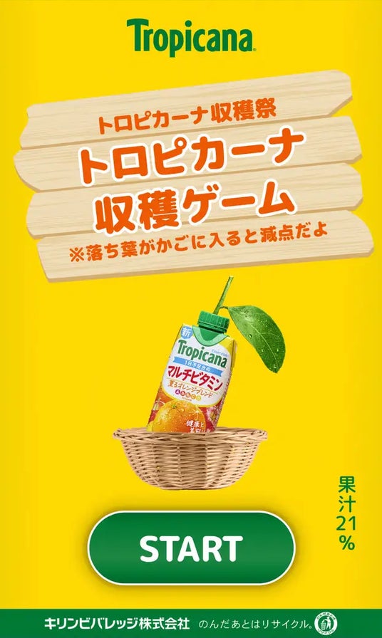 概要:トロピカーナ収穫ゲームは時間内にどれだけのトロピカーナをキャッチできるかを競うゲームです。 スマホやパソコンから簡単に挑戦できます。
