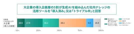 大企業の導入企画層の50%が、生成AIを組み込んだ社内ナレッジの活用ツールの具体行動(「導入済み」又は「トライアル中」)をしていると回答しました。