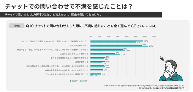 話がかみ合わない、有人との連携など「チャットが繋がった後の不満」は昨年調査よりも減少。一方でチャットでの対応可能範囲には引き続き課題も。