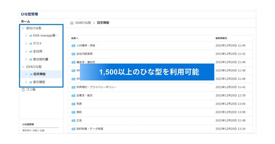 GVAひな型は、1,500通以上の契約における定型的な書式を有しており、法務関連文書の作成をより効率的かつ、より迅速に行うことが可能です。なお、1,500以上のひな型数は業界最多となります。(2024年3月時点、当社調べ)