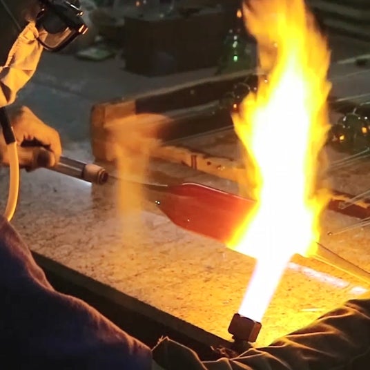 滑らかな曲線やリボン、耳のふくらみを美しく仕上げるには、温度や吹き込みのタイミングを繊細にコントロールしなければなりません。ほんの少しでもバランスが崩れると失敗作になってしまうため、職人は長年の経験と高度な技術を駆使し製作を進めています。