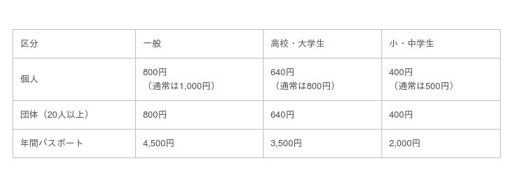 イベントの参加費は無料ですが、別途入館料が必要です。