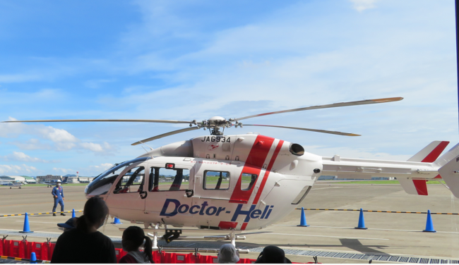 ミュージアム前駐機場にドクターヘリを駐機します。