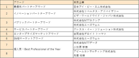 各賞の受賞パートナー企業は以下の通りです。