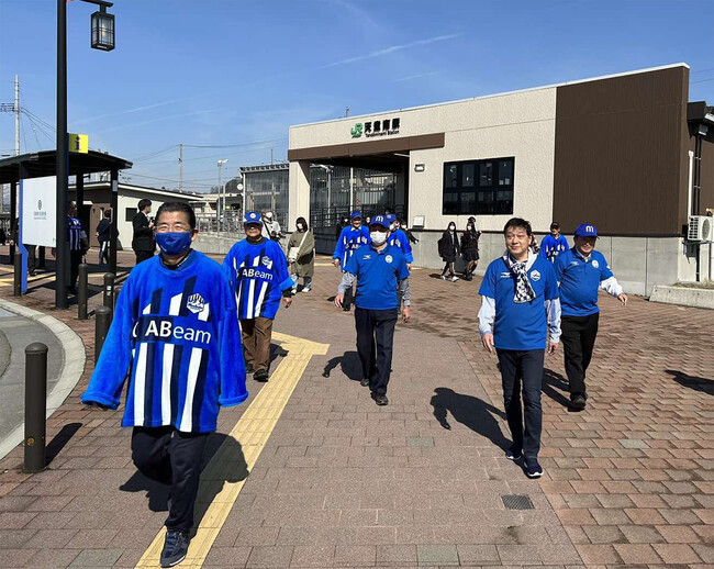 奥羽本線をクラブカラーの“青白“で埋め尽くし、スタジアムへ近づくワクワク感を創出してまいります!