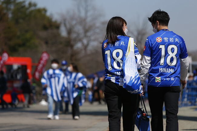 電車に乗って、歩いてスタジアムへ来場しましょう!