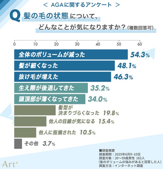 - 20~50代男性、4割以上が髪のボリュームに悩みあり