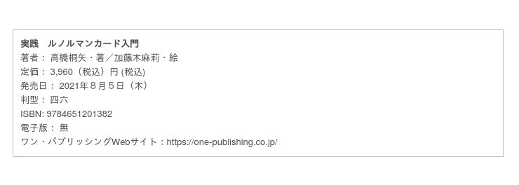 株式会社 ワン・パブリッシング(東京都台東区/代表取締役社長:廣瀬有二)は、2021年8月5日(木)に『実践 ルノルマンカード入門』を発売いたしました。