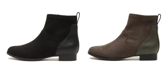 使いやすい高さのヒールと人気のストレッチ素材を使用しました。すっきりした見た目とは反対にアッパー の素材の伸縮性によりソフトな履き心地となっています。スエード調素材とかかとのスムースの素材の切り替えが秋冬らしく、フロントとバックスタイルで見た目が違って見えるのも魅力です。インサイドにはジップを採用しており、脱ぎ履きもスムーズです。