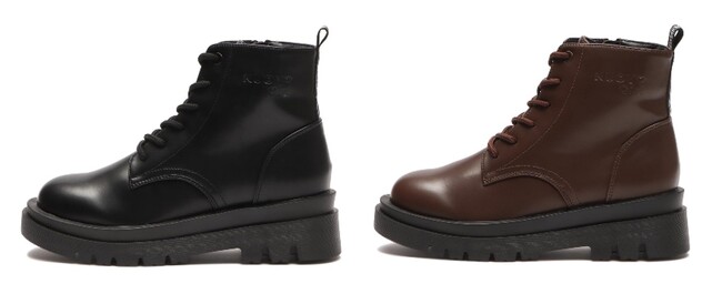 履くだけで大人っぽコーデの完成!厚底レースアップブーツ。シンプルなデザインに、かかとのロゴテープでうしろ姿もぬかりなく。履き口サイドにはさり気なく型押しロゴで上品さもプラス。ボリュームのある厚底ソールはクッション性抜群なやわらか素材で疲れにくい仕様。インサイドにはジッパー付きなので、紐を解かずに着脱できてらくちん。アッパーも柔らかで足にフィットします 。