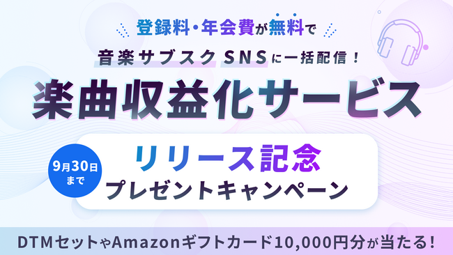 ◇応募条件:1. キャンペーン期間中に「楽曲収益化サービス」へ楽曲を申請
