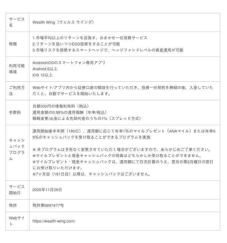 当社は利益を追求するヘッジファンドの高度な投資手法をより多くの方が簡単かつ手軽に享受できるよう、一任投資サービスWealth Wingを2020年より提供しています。