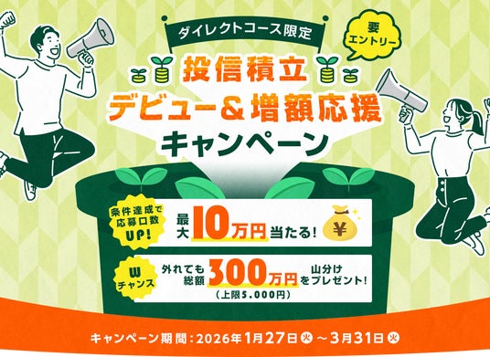 SMBC日興証券株式会社は、1月27日(火)より、【ダイレクトコース限定】投信積立デビュー&増額応援キャンペーンを開始いたしました。