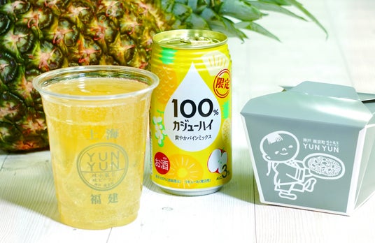 100%カジューハイ<爽やかパインミックス>がビーフンと焼小籠包の専門店『YUNYUN』にてお楽しみいただけます。神戸南京町の名店に新たな魅力を加え、より特別なひとときを提供することを目指します。